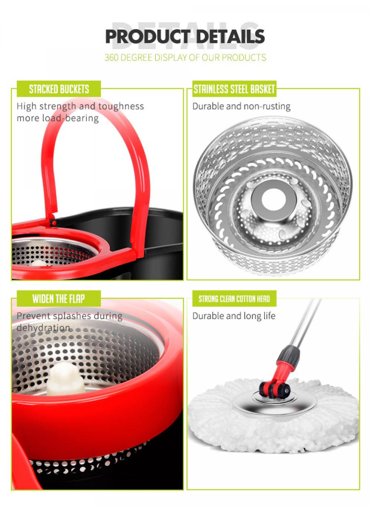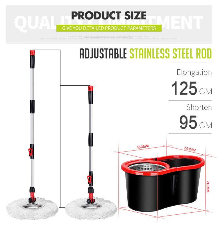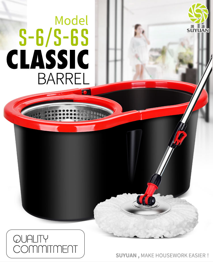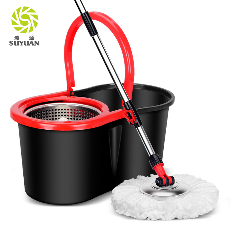 SUYUAN Mop and Bucket set with highest quality stainless steel extendable handle, easy to collapse and extend. Head rotating 360°.
