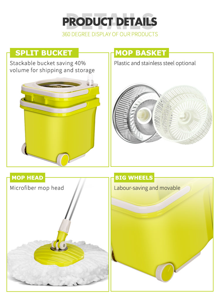 | Structure | Super Water Absorption, Microfiber Mop Head, Stainless Steel Handle. Thicken Plastic Bucket, Pedal Gear Transmission, Washing And Dehydration Design, High-Precision Bearing Structure |